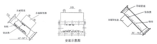 RCYA1、RCYA2系列管道式永磁除鐵器包括無磁管道和永磁鐵兩部分,****于對(duì)封閉管道內(nèi)非磁性物料除鐵、永磁除鐵器內(nèi)部采用高性能稀土強(qiáng)磁材料組成復(fù)合磁系。具有體積小、磁力大、重量輕、除鐵干凈、方便、無能耗、使用壽命長等特點(diǎn)。適合于無輸送皮帶,只能提供下料溜槽的場合。當(dāng)散狀物料經(jīng)過管道式永磁除鐵器時(shí),鐵雜物被高場強(qiáng)的永磁鐵所吸附,清除鐵雜質(zhì)時(shí),打開管道****門將雜質(zhì)取出。該設(shè)備適用于含鐵量較少的場合,含鐵較多的場合,應(yīng)選用自卸式除鐵器或RCYG系列精細(xì)除鐵器。主要應(yīng)用于水泥、化工、煤炭、塑料、耐火材料、建材等行業(yè)的下料管道中清除雜物。